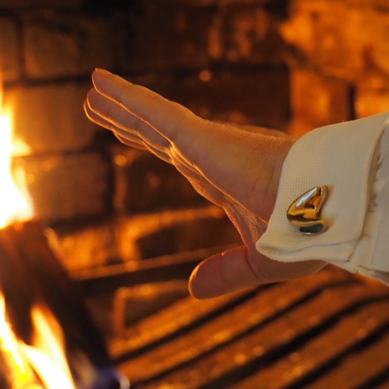 The abstract, dynamic forms are designed to move light down and into the sculpture as you move, while giving flashes of blue/green from the recessed patinated core. Inspired by old science fiction movies and 50's cufflink designs by Henning Koppel for Georg Jensen.