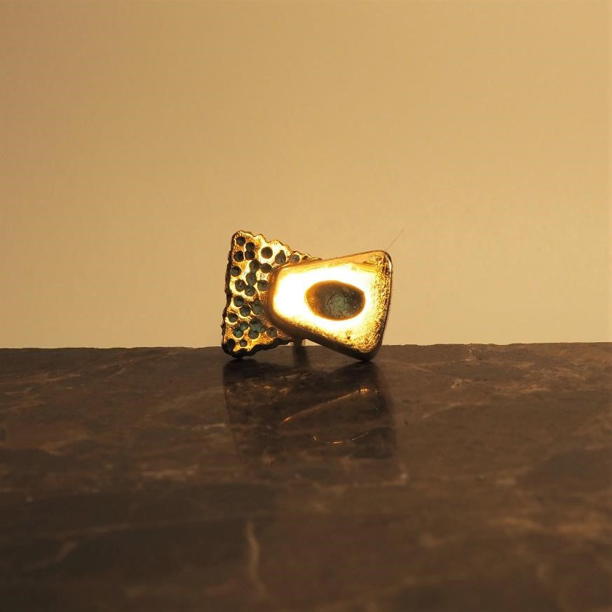 Bronze brutalist cufflinks in bronze with blue/green patination.